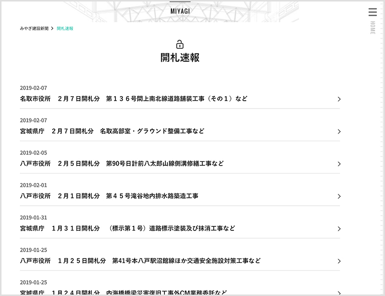 宮城県内の公共・民間工事計画や入札情報などを網羅。